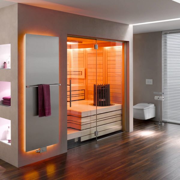Experience ourย ROCHER with 100 kg of sauna stones are held in a brushed steel brazier.